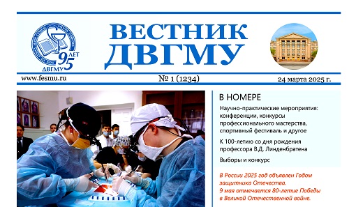 Дорогие Друзья! Вышел очередной выпуск газеты «Вестник ДВГМУ». В номере: научно-практические мероприятия: конференции, конкурсы профессионального мастерства; итоги спортивного фестиваля; к 100-летию со дня рождения профессора В.Д. Линденбратена; память поколений (документальная и художественная литература о Великой Отечественной войне) и другое.