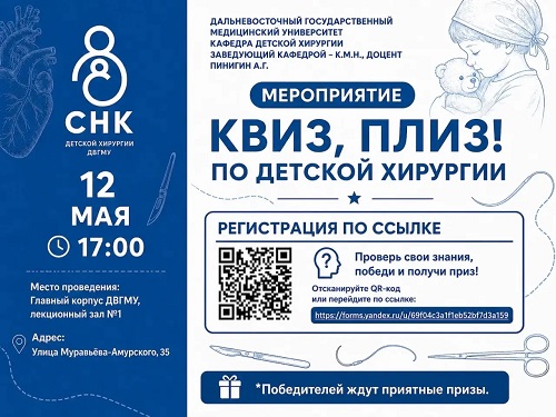 12 мая в 17:00 в лекционном зале №1 главного корпуса ДВГМУ.