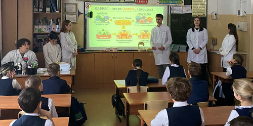 3 февраля в МАДОУ «Средняя общеобразовательная школа №12» г. Хабаровска студенты МФК по направлению Стоматология профилактическая под руководством преподавателя МФК Гермаш В.И. провели урок здоровья для учеников 4 Г класса.