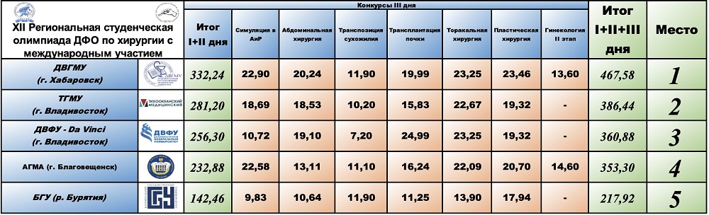III Дальневосточная (XII Региональная) студенческая олимпиада по хирургии с международным участием