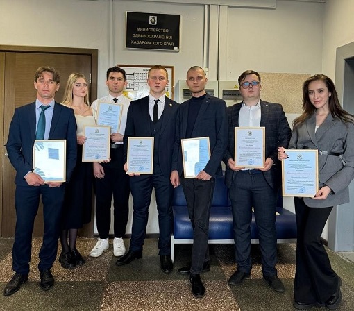 21 мая в стенах Министерства Здравоохранения Хабаровского края прошло чествование сотрудников и студентов ДВГМУ, принявших участие в Параде Победы 9 мая, приуроченному к 80-й годовщине Победы в Великой Отечественной войне 1941-1945.
