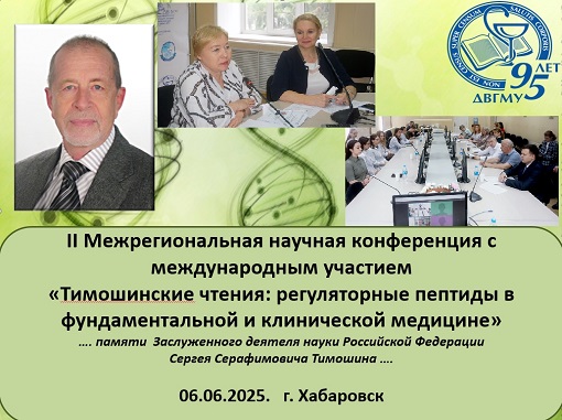 6 июня 2025 года в дальневосточном государственном медицинском университете прошла II Межрегиональная научная конференция «Тимошинские чтения: регуляторные пептиды в фундаментальной и клинической медицине».