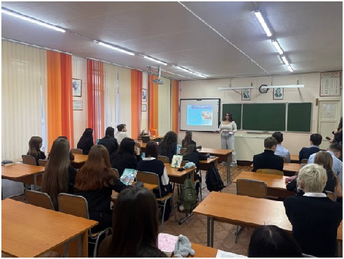 24 февраля 2026 г. студентка 1 курса лечебного факультета Парфенова С. - под руководством преподавателя кафедры иностранных языков ДВГМУ Лазуткиной Кристины Евгеньевны провела профориентационную беседу в МОУ СОШ №8 г. Комсомольск-на-Амуре. На встрече присутствовали учащиеся 9-11-х классов.